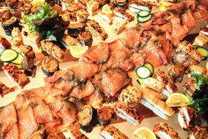- reichhaltige, vielseitige Buffets (Vorspeisen, Hauptgänge, Desserts … gerne mit Feuerwerk)